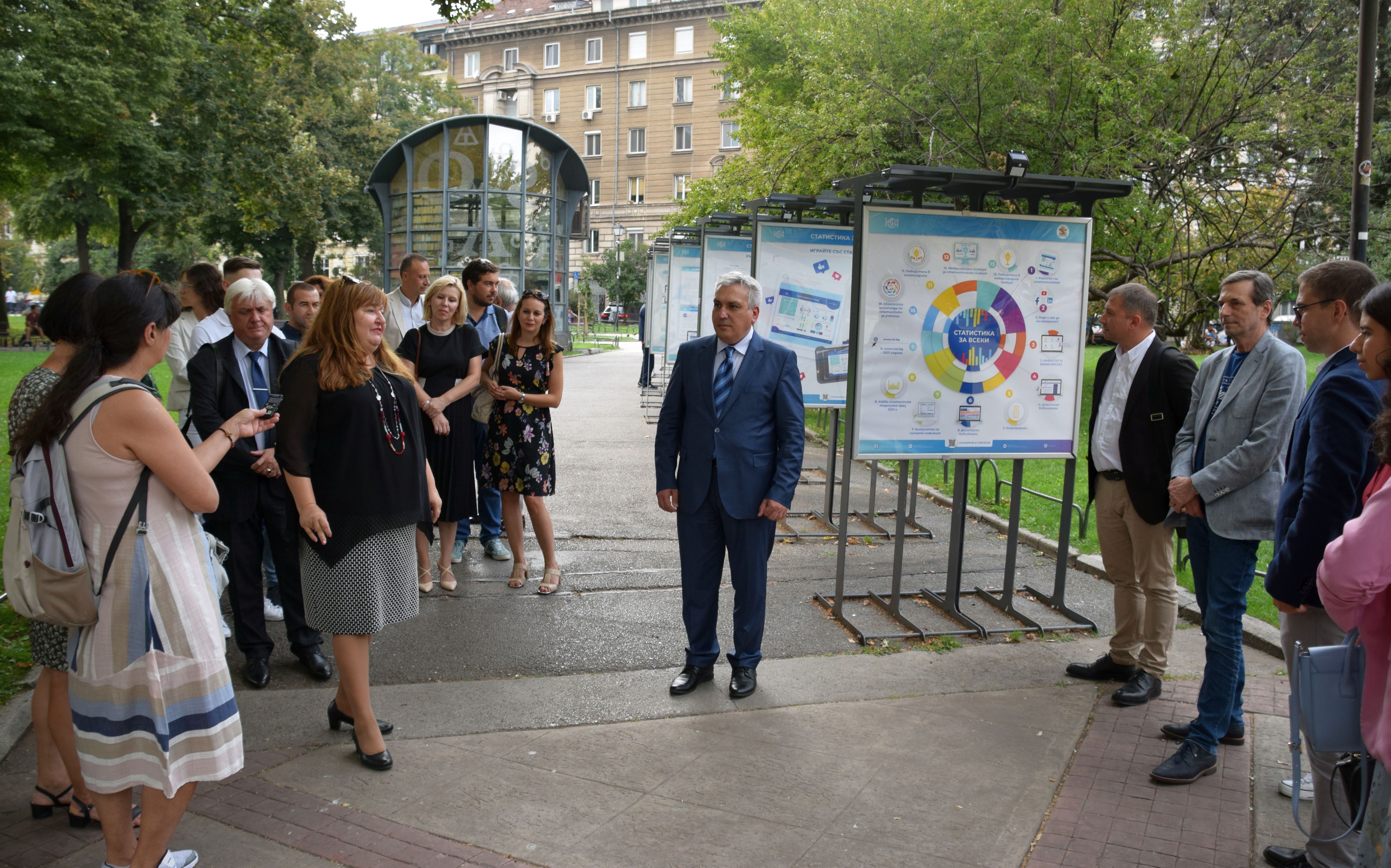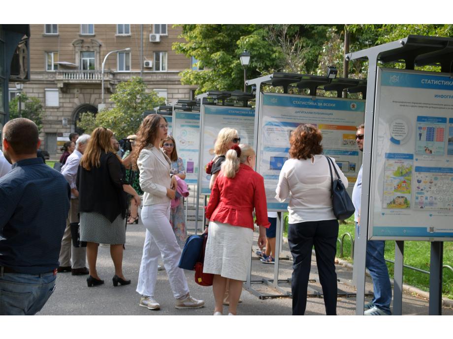 The President of the National Statistical Institute (NSI), Assoc. Prof. Atanas Atanasov, PhD, opened the exhibition ‘Statistics for Everyone’, positioned in the open-air gallery ‘Gradska gradina’ in front of the National Theatre in Sofia.