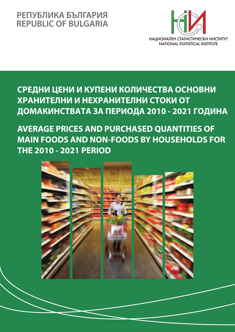 The publication contains data on the average prices and purchased quantities of foods and non-foods by households by years for the 2010 - 2021 period and by quarters of 2021. The information from the monthly survey of household budgets is used and because of that, these average prices differ from average consumer prices published monthly by the NSI. The purchased quantities of foods are computed average per household and the purchased non-foods - average per 100 households. There are also data on the purchasing power of households calculated by means of total and monetary income, as well as the changes in the purchasing power.