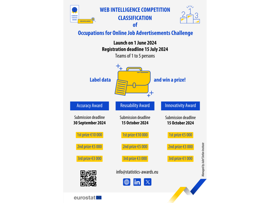 На 1 юни 2024 г. статистическата служба на Европейския съюз – Главна дирекция „Евростат“, поставя началото на конкурса за Европейските награди по статистика за Web Intelligence - използването на съвременни методи и технологии за извличане, анализиране и интерпретиране на данни от уеб пространството - European Statistics Awards