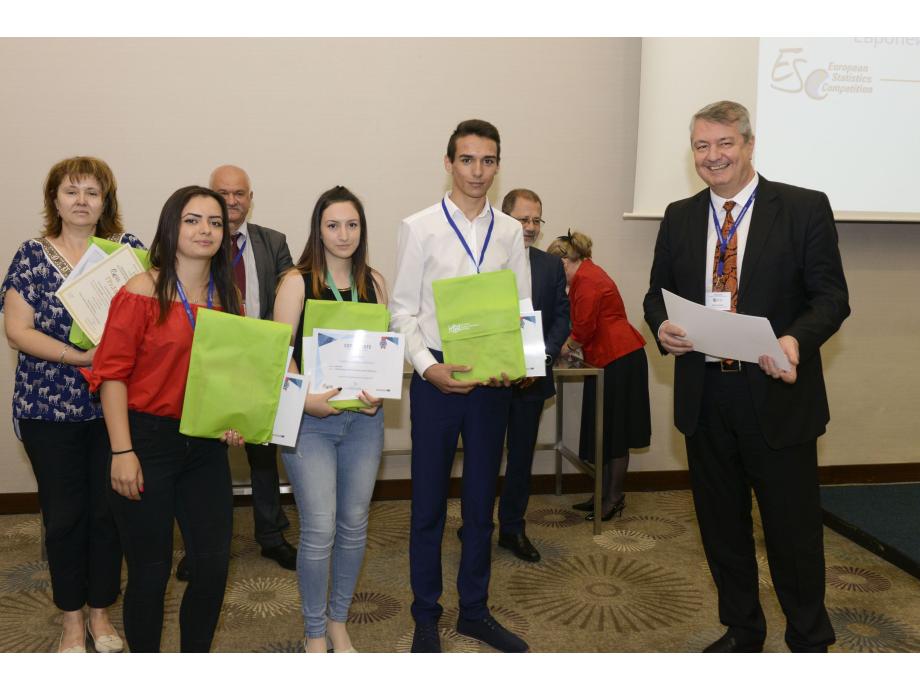 На форума бяха наградени победителите в националния кръг на Европейската олимпиада по статистика за ученици 2018, в която участваха 527 ученици от цяла България, разпределени в 194 отбора. На първо място в категория А (ученици от Х - ХII клас) се класира отбор IntelYRF от Държавната финансово-стопанска гимназия „Интелект“ в гр. Плевен, а в категория Б (ученици от VIII - IX клас) - отбор Омега от Професионалната гимназия по икономика и мениджмънт в гр. Пазарджик. Проф. д-р Валентин Гоев, заместник-ректор на УНСС, приветства наградените и обяви решението на Академичния съвет на УНСС да признае оценка отличен 6.00 за резултат от конкурсен изпит за кандидатстване за специалност „Статистика и иконометрия“ за учебната 2018/2019 и 2019/2020 година на първенците в националния кръг на Европейската олимпиада по статистика.