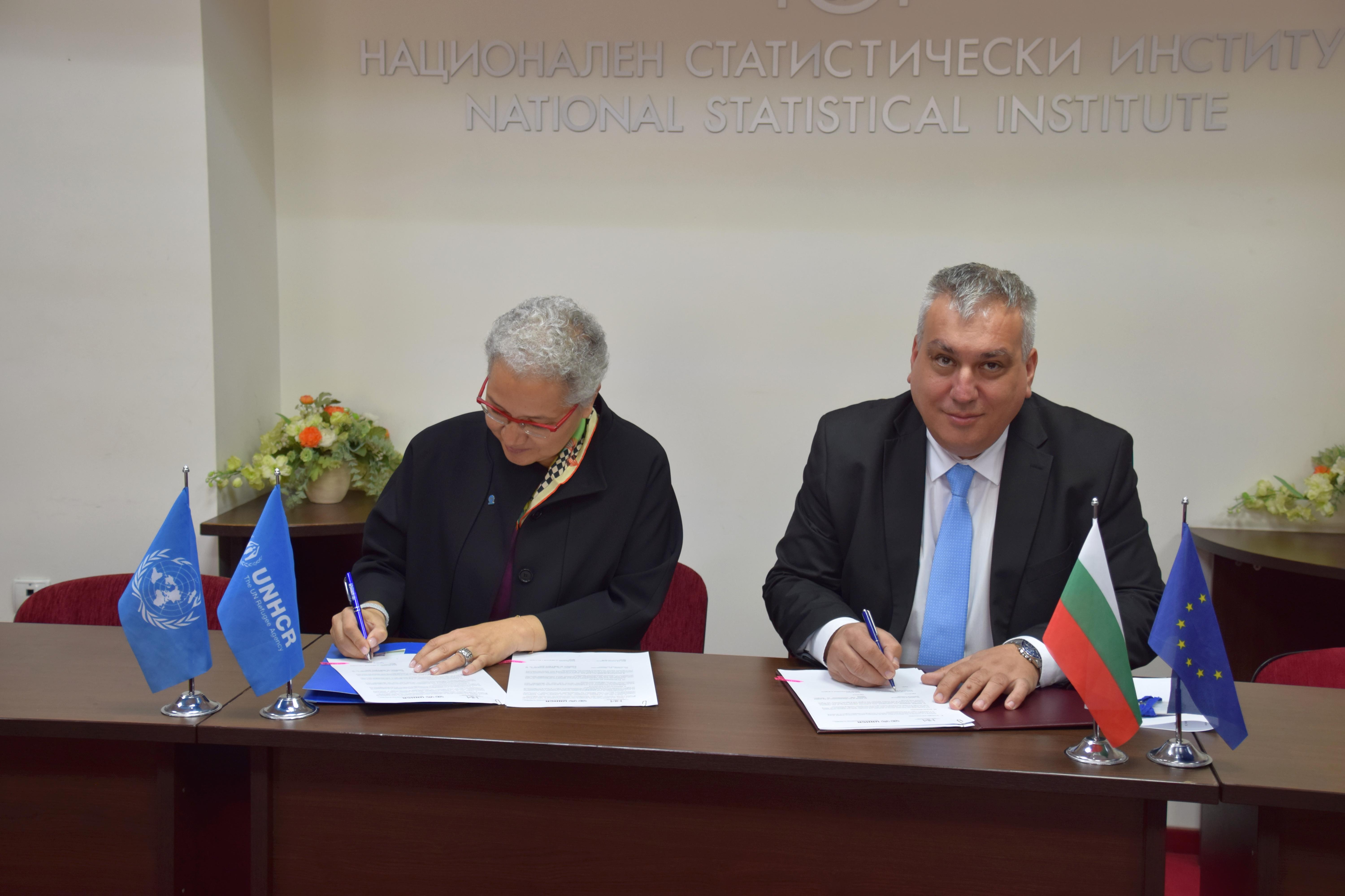 Председателят на Националния статистически институт доц. д-р Атанас Атанасов и Седа Кузуджу, представител на Върховния комисариат за бежанците на ООН /ВКБООН/ в България подписаха Меморандум за сътрудничество.