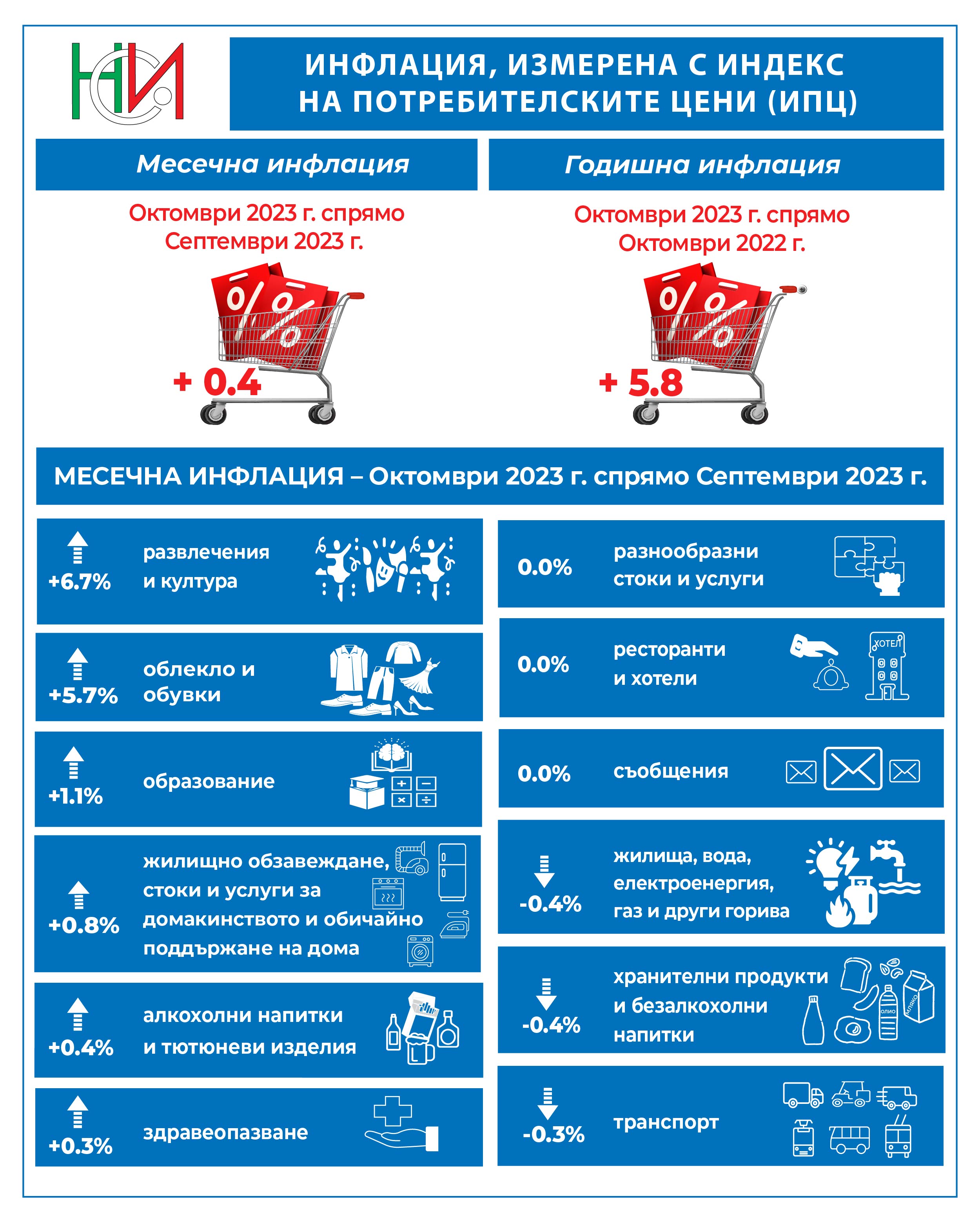 Инфлация и индекси на потребителските цени за октомври 2023 година