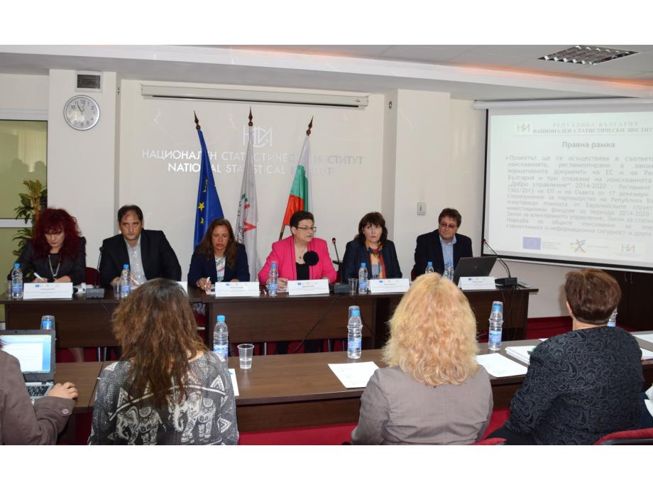 Основната цел на проекта е разработване на статистическа рамка и процедури за събиране и разпространение на информация с цел оптимизиране на процесите на обмен на данни и достъпност и публичност на информацията за регулярно наблюдение и оценка на изпълнението на национални и европейски стратегии и мониторинг на индикаторите за резултат по оперативните програми за програмния период 2014 - 2020 година.